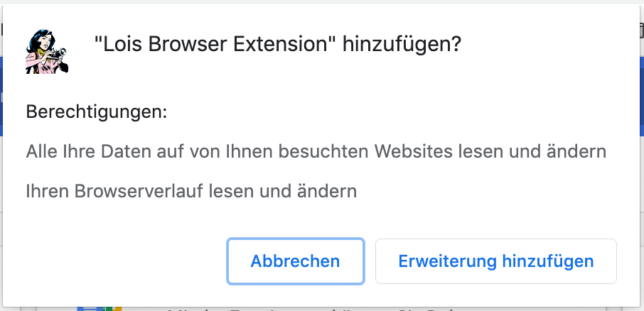Lies die Informationen zu den Berechtigungen und klicke dann auf “Erweiterung hinzufügen”.