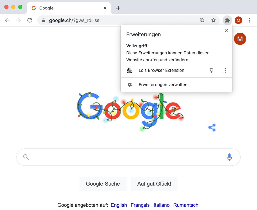 Wenn alles geklappt hat findest du nun das LOIS-Symbol bei deinen Browser-Erweiterungen (Fenster > Erweiterungen oder chrome://extensions).