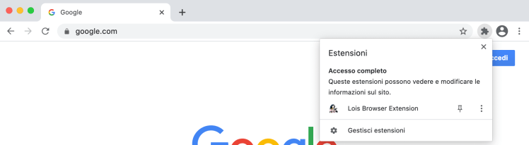 Se tutto è andato a buon fine, tra le estensioni (pulsante a forma di puzzle), troverai l’icona di LOIS.